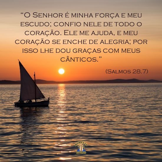 "O Senhor é minha força e meu escudo; confio nele de todo o coração. Ele me ajuda, e meu coração se enche de alegria; por isso lhe dou graças com meus cânticos."