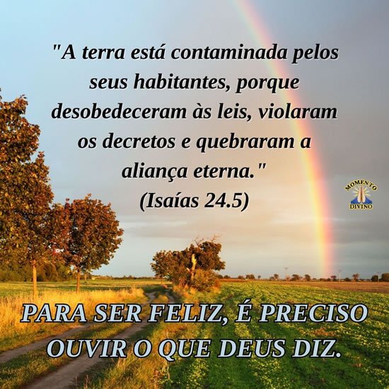 "A terra está contaminada pelos seus habitantes, porque desobedeceram às leis, violaram os decretos e quebraram a aliança eterna."