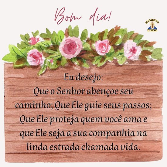 Eu desejo: Que o Senhor abençoe seu caminho; Que Ele guie seus passos; Que Ele proteja quem você ama e que Ele seja a sua companhia na linda estrada chamada vida.