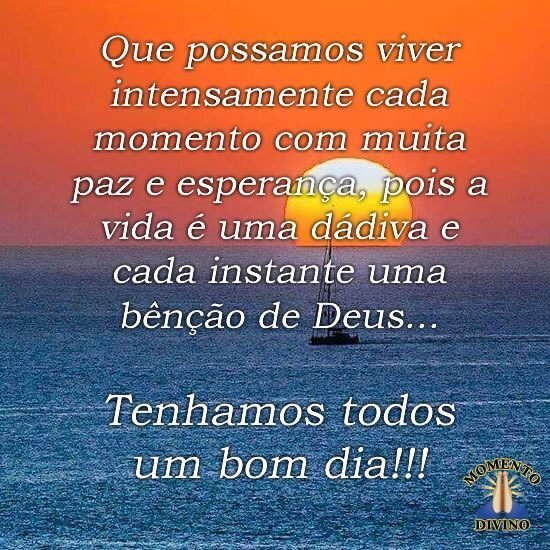 Que possamos viver intensamente cada momento com muita paz e esperança, pois a vida é uma dádiva e cada instante uma bênção de Deus...