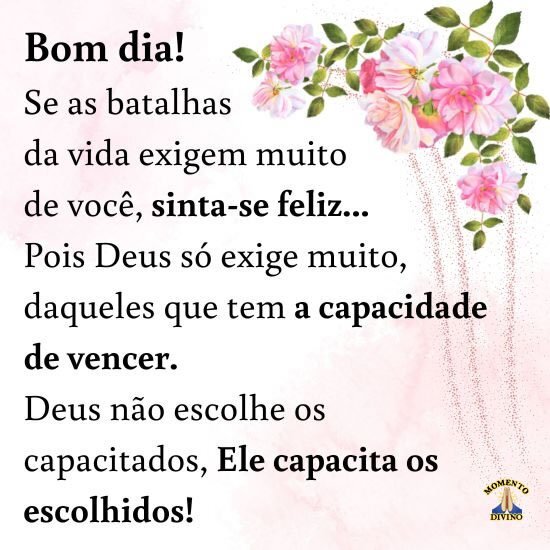 Pois Deus só exige muito, daqueles que tem a capacidade de vencer.
