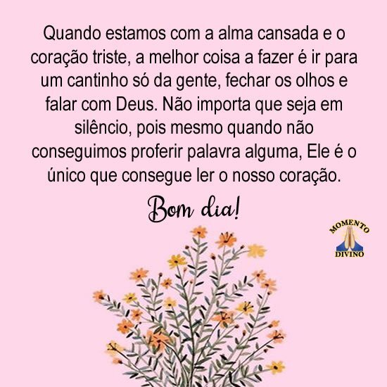 Quando estamos com a alma cansada e o coração triste, a melhor coisa a fazer é ir para um cantinho só da gente, fechar os olhos e falar com Deus. Não importa que seja em silêncio, pois mesmo quando não conseguimos proferir palavra alguma, Ele é o único que consegue ler o nosso coração.
