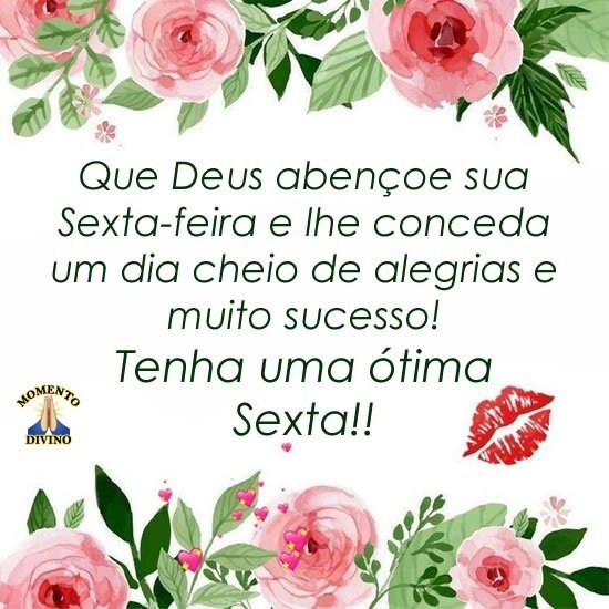 Que Deus abençoe sua Sexta-feira e lhe conceda um dia cheio de alegrias e muito sucesso!