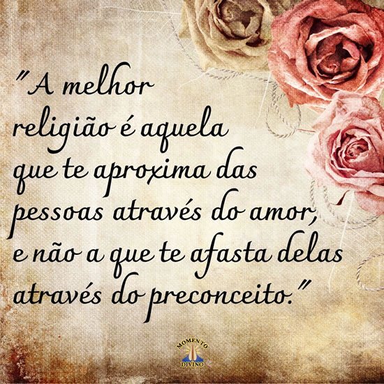 "A melhor religião é aquela que te aproxima das pessoas através do amor, e não a que te afasta delas através do preconceito."