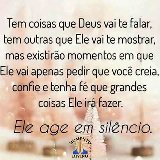 Tem coisas que Deus vai te falar, tem outras que Ele vai te mostrar, mas existirão momentos em que Ele vai apenas pedir que você creia, confie e tenha fé que grandes coisas Ele irá fazer.
