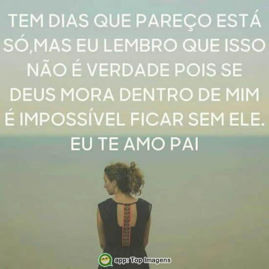 Tem dias em que pareço estar só, mas eu me lembro que isso não é verdade, pois se Deus mora dentro de mim é impossível ficar sem Ele!
