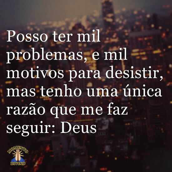 Posso ter mil problemas, e mil motivos para desistir, mas tenho uma única razão que me faz seguir: Deus.
