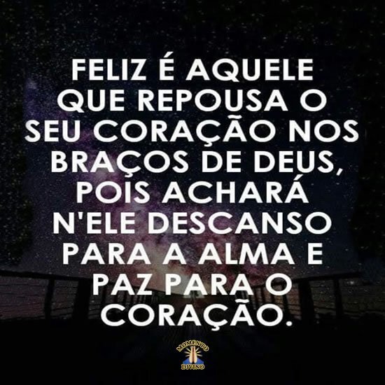 Feliz é aquele que repousa o seu coração nos braços de Deus, pois achará Nele descanso para a alma e paz para o coração.